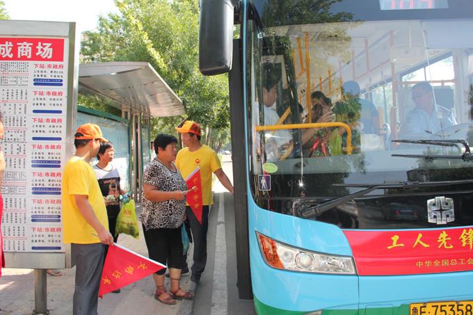 市公交公司志愿者在公交站