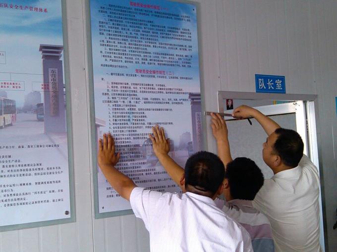為了進(jìn)一步落實“交通四化管理”工作要求,推進(jìn)“五城聯(lián)動”工作開展,完善安全生產(chǎn)管理制度,健全安全生產(chǎn)管理體系,提升安全生產(chǎn)管理水平,近日,市公交公司根據(jù)工作實際將車隊隊長、安全副隊長、安全員的崗位職責(zé)和駕駛員安全操作規(guī)范、駕駛員管理規(guī)定、車隊安全生產(chǎn)管理體系以及道路旅客運輸企業(yè)安全管理規(guī)范等規(guī)章制度進(jìn)行了重新梳理和完善,并制作成展板安裝在各車隊醒目位置供車隊全體干部職工進(jìn)行學(xué)習(xí)和交流。這些規(guī)章制度的進(jìn)一步完善,不僅使公司駕駛員進(jìn)一步樹立了安全行車意識,規(guī)范了安全操作規(guī)程,還使公司安全生產(chǎn)管理人員進(jìn)一步明確了自己的工作職責(zé),規(guī)范了安全管理流程,為公司安全生產(chǎn)管理工作的穩(wěn)步前進(jìn)奠定了基礎(chǔ)。