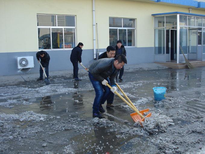 在清雪過程中,同志們不畏嚴(yán)寒,破冰除雪,干勁高漲。在大家的共同努力下,僅用兩個小時便將車隊(duì)門前積雪清掃干凈,用自己的勞動為車隊(duì)全體人員的安全出行提供方便,真正以實(shí)際行動落實(shí)十八大精神,為營造和諧公交貢獻(xiàn)自己的力量。