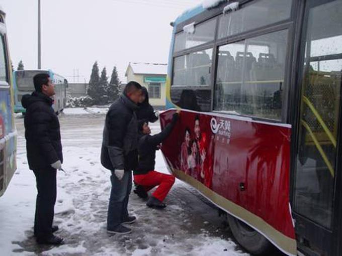 時(shí)值立春節(jié)氣,一場鋪天蓋地的大雪似乎讓春天的腳步放慢了些,但是公司廣告部制作人員的工作節(jié)奏卻沒有因此而減慢。為保證所有廣告畫面春節(jié)前能夠順利及時(shí)張貼完畢,他們冒著冰雪嚴(yán)寒,加班加點(diǎn)在各處車場緊張而有序地忙碌著。他們不分時(shí)段,根據(jù)車輛班次間隔來及時(shí)調(diào)整工作時(shí)間,白天時(shí)間調(diào)整不了就晚上加班,不畏風(fēng)雪,不畏嚴(yán)寒,克服困難,積極肯干,他們用自己的工作熱情和干勁,迎接著春節(jié)的到來,確保了廣大客戶的切身利益,為新一年的工作開了個(gè)好頭。