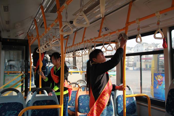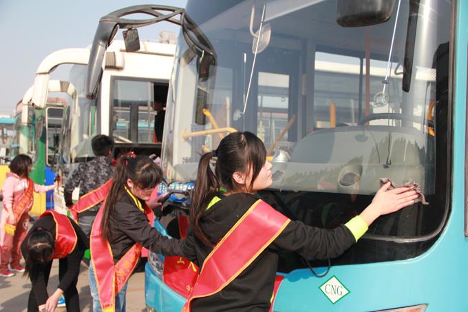 2013年3月9日上午,市公交公司汽車一隊聯(lián)合東營市職業(yè)學(xué)院會計學(xué)院的大學(xué)生開展了義務(wù)活動。參加義務(wù)活動的38人分為兩個活動小組,一組乘坐公交車上路為老、弱、病、殘、孕等特需乘客服務(wù),以及在站點(diǎn)疏導(dǎo)乘客;另一組在汽車一隊駐地幫助擦洗公交車,清掃車廂衛(wèi)生。大家工作起來井然有序,有條不紊,都認(rèn)真投入其中,尤其活躍在車廂為乘客服務(wù)的志愿者們,更是得到了乘客的一致好評,成為公交車上一道亮麗的風(fēng)景。