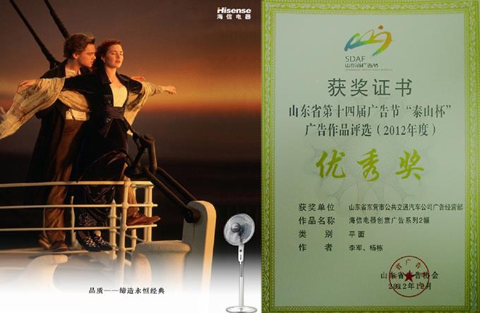 在第四屆山東文化創(chuàng)意產(chǎn)業(yè)博覽交易會廣告創(chuàng)意大賽中,市公交公司廣告部張瑞文設(shè)計的作品《凳子》獲得優(yōu)秀獎;在山東省第十四屆廣告節(jié)“泰山杯”廣告作品評選中,張瑞文設(shè)計的作品《老婆同時看上啦》以及楊棟設(shè)計的海信電器創(chuàng)意廣告系列作品同時獲得優(yōu)秀獎。