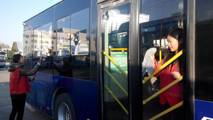來自東營市職業(yè)學(xué)校會計學(xué)院的大學(xué)生和市公交公司汽車一隊職工共計24人,分兩個小組,一組乘坐公交車上路為特需乘客服務(wù),幫助疏導(dǎo)乘客,另外一組幫助駕駛員擦拭公交車,清掃車廂衛(wèi)生。大家工作起來井然有序,有條不紊,尤其活躍在車廂為乘客服務(wù)的志愿者們,更是得到了乘客的一致好評,成為公交車上一道靚麗的風(fēng)景。