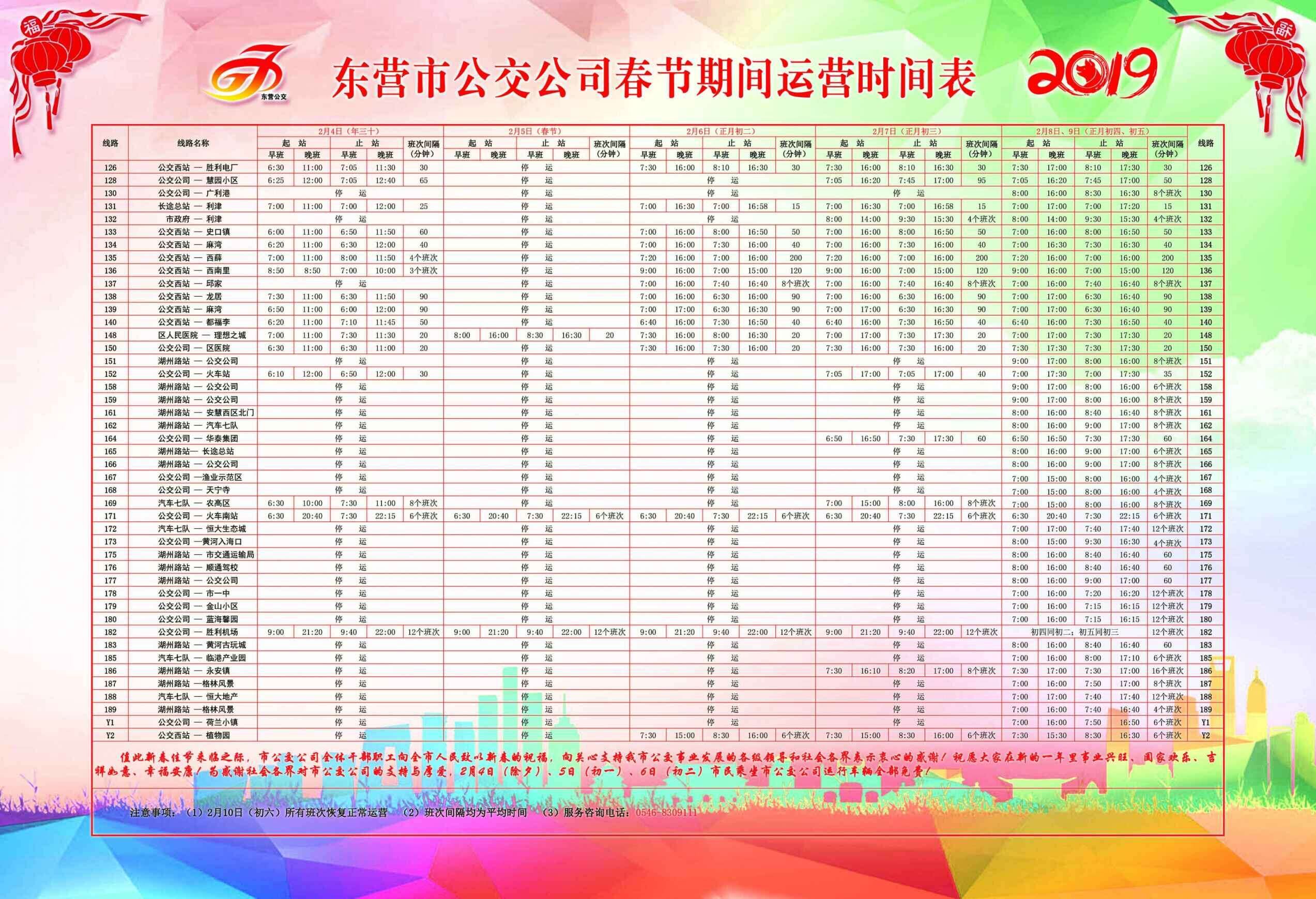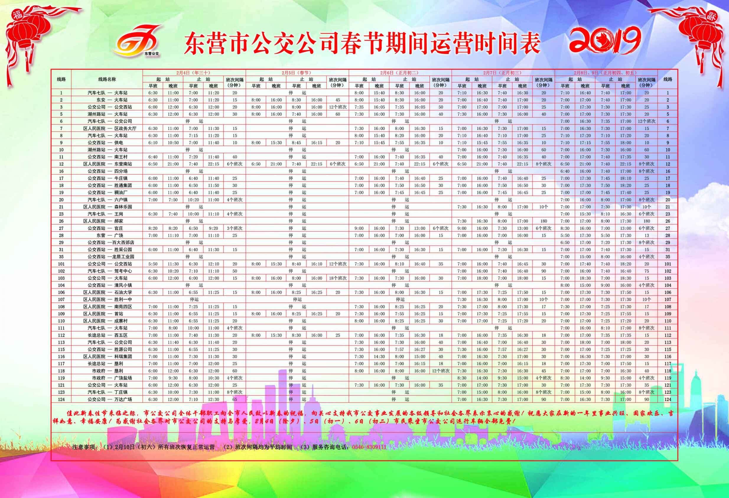 2019年東營市公交公司春節(jié)期間運(yùn)營時(shí)刻表2