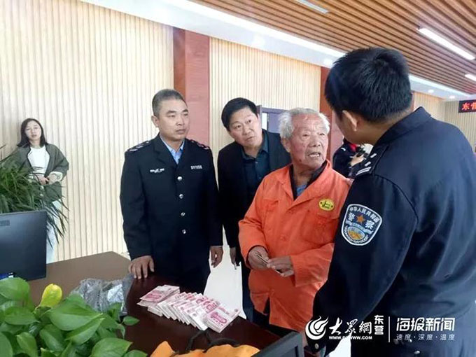 輾轉(zhuǎn)多方,車隊(duì)聯(lián)系到了失主,由于老人年紀(jì)較大,溝通不暢,車隊(duì)便將現(xiàn)金交給附近的勝利派出所?!袄先寺?tīng)到錢(qián)在派出所這才安心。”