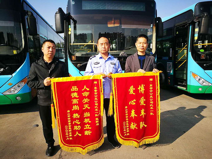 10月4日上午11:30時,市公交公司汽車一隊駕駛員藍新啟駕駛魯EA3802車運行118路任務,當行駛至膠州路公交公司站點減速靠邊時,發(fā)現路邊有一個人倒在地上,揮手示意。藍新啟立即靠邊停車,快步從車上跑下來,發(fā)現是一個老人倒在地上。藍新啟詢問老人怎么回事,老人口齒不清。藍新啟立即撥打110、120急救電話,又與另外兩名乘客一起將老人扶坐起來,等待110、120到來。110、120到來后,藍新啟幫助將老人抬上救護車,又繼續(xù)運行任務。
