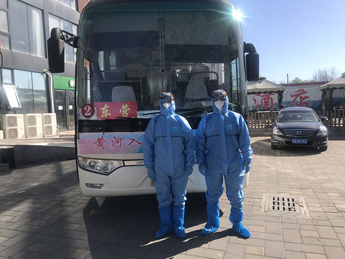 3月17日晚,汽車二隊接到公司指令,迅速動員調(diào)集10名駕駛員,5臺大巴車組成轉(zhuǎn)運隊伍,配合市防疫指揮部駐北京工作專班執(zhí)行入境人員回東營市區(qū)的轉(zhuǎn)運任務(wù)。接到指令后,汽車二隊迅速定人定車,在短短30分鐘內(nèi)完成人員和車輛的調(diào)集。在市防疫指揮部與公安、衛(wèi)生等部門工作人員共同參加完簡短又嚴(yán)肅的部署動員會后,全體參運駕駛員不顧安危,道別家人,次日便身穿防護服,全副武裝,奔赴防疫前線,成為了“抗疫逆行者”。