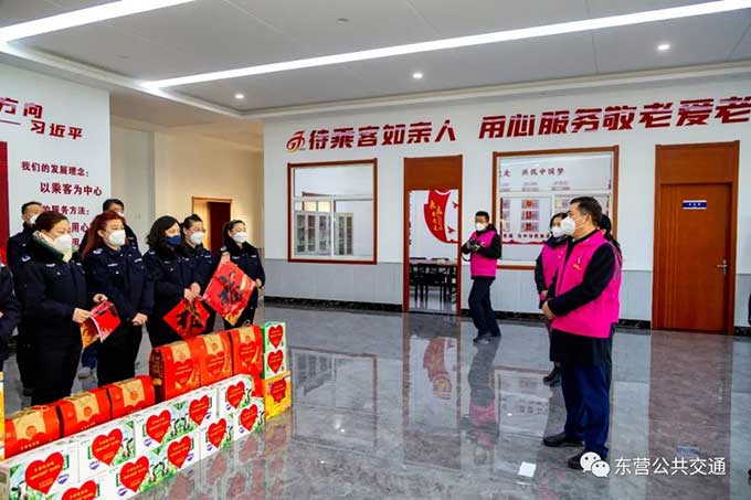 在新春佳節(jié)到來(lái)之際,1月20日上午,市婦聯(lián)黨組書(shū)記、主席侯麗霞帶領(lǐng)市婦聯(lián)、東營(yíng)農(nóng)商行組成的慰問(wèn)隊(duì)到市公交公司進(jìn)行“黃河口過(guò)大年”送溫暖活動(dòng),看望慰問(wèn)堅(jiān)守在工作崗位的一線公交駕駛員,并致以新春的問(wèn)候與祝福。候麗霞詳細(xì)了解了一線公交駕駛員的身體狀況和家庭生活情況,叮囑公交駕駛員要做好疫情防控,合理安排好工作和休假,祝愿大家度過(guò)一個(gè)快樂(lè)祥和的春節(jié)。同時(shí),還送上春聯(lián)、牛奶、八寶粥等慰問(wèn)物資。