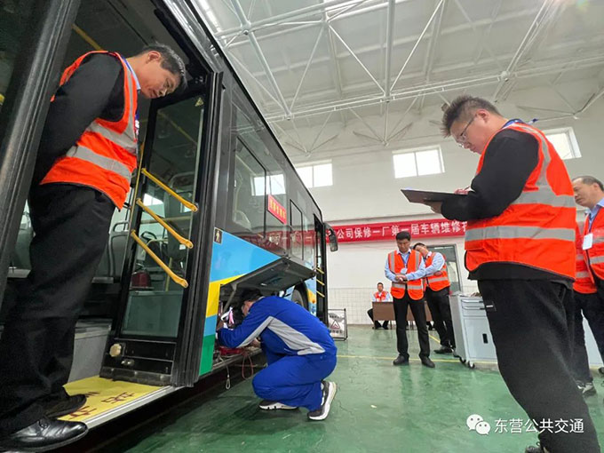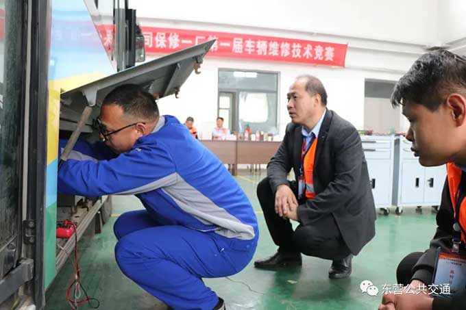 為保證比賽的公平性,本次比賽理論考試試題開(kāi)考前20分鐘出題打印,實(shí)操比賽裁判由多次參加省內(nèi)公交維修技術(shù)比武的裁判和選手擔(dān)任,并邀請(qǐng)中通客車(chē)廠(chǎng)售后服務(wù)經(jīng)理李延營(yíng)同志擔(dān)任主要評(píng)分人員。
