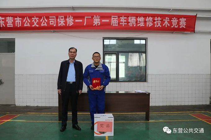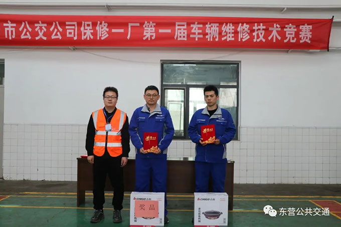 公司黨委成員、工會(huì)主席蔣積堯同志、中通客車(chē)廠(chǎng)售后服務(wù)經(jīng)理李延營(yíng)同志、公司技術(shù)科科長(zhǎng)馮子英同志分別為獲得一、二、三等獎(jiǎng)的選手進(jìn)行了頒獎(jiǎng)。