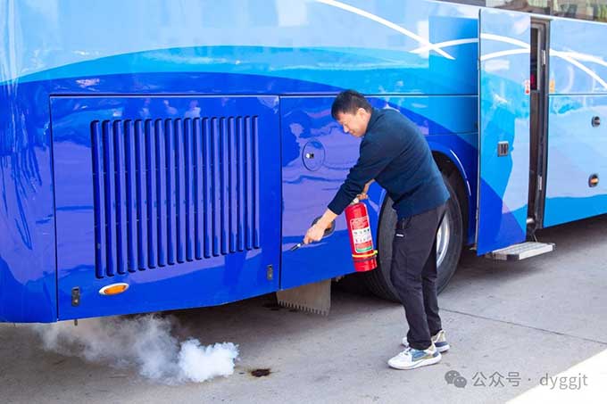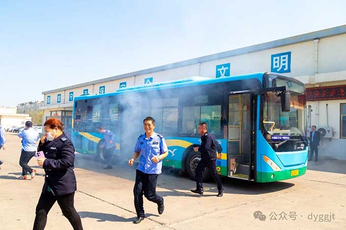 演練重點(diǎn)圍繞公交車、旅游客車發(fā)生火災(zāi)應(yīng)急處置、消防器材使用、滅火演練三方面進(jìn)行。演練設(shè)置了滅火器、應(yīng)急錘、門、窗等應(yīng)急設(shè)施的使用操作、發(fā)生火災(zāi)時(shí)人員疏散、應(yīng)急逃生、報(bào)告等流程環(huán)節(jié),突出了演練的實(shí)戰(zhàn)性和實(shí)效性。