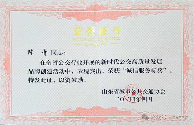 陳青同志于2020年榮獲東營市“五一勞動獎章”,先后獲得東營市第一屆、第二屆城市公交駕駛員安全節(jié)能駕駛大賽中第三名和第一名的優(yōu)異成績,代表東營市參加全省城市公交駕駛節(jié)能技能大賽,并取得了優(yōu)異成績。