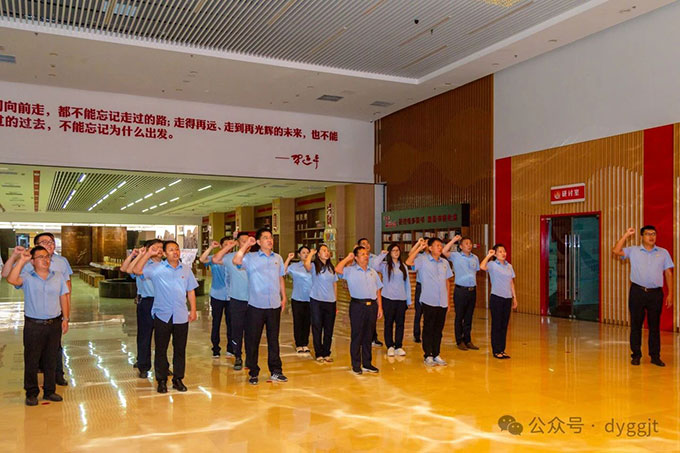隨后大家參觀了“崢嶸歲月 光輝歷程”——中共東營(yíng)市地方組織建立100周年圖片展,進(jìn)一步了解東營(yíng)市地方黨組織發(fā)展奮斗歷程。最后,全體黨員在黃河分館宣誓大廳面對(duì)黨旗莊嚴(yán)宣誓,重溫入黨誓詞。