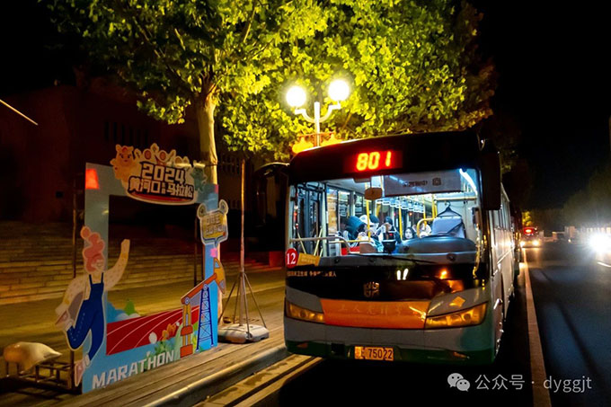 在賽事當(dāng)天,市公交集團(tuán)駕駛員凌晨三點(diǎn)半分別從汽車一隊(duì)、汽車二隊(duì)、汽車五隊(duì)、通勤車隊(duì)駐地到達(dá)了指定地點(diǎn)集結(jié)完畢。他們穿著整潔的制服,面帶微笑,熱情地迎接每一位志愿者登車。為了方便志愿者們識(shí)別,每輛公交車上都貼有明顯的“黃河口(東營)馬拉松賽事轉(zhuǎn)運(yùn)車”標(biāo)志。