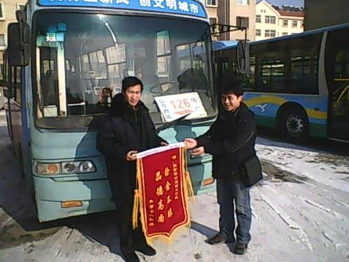 2010年1月6日,東營車網(wǎng)的劉先生手拿寫有“拾金不昧品德高尚”的錦旗,來到市公交公司汽車三隊,要求車隊領(lǐng)導(dǎo)大力表揚126路駕駛員劉波。