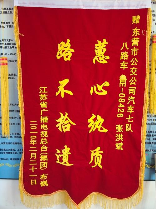 原來,2月20日,初次來東營走親訪友的失主布巍小酌后準備返程,不小心將手提包丟在8路車上,內有DV機、出國護照和工作證等物件,年后就準備出國的他非常著急。經(jīng)過查詢與汽車七隊取得聯(lián)系,當?shù)弥眯鸟{駛員張洪斌已將失物及時上交車隊,失主布巍非常感動,因急于趕回單位出國,沒能當面致謝,特寄來錦旗表示謝意。