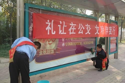 10月16日上午,市公交公司積極響應(yīng)市文明辦開展的“從我做起,走向文明”志愿服務(wù)集中行動(dòng),組織公司及車隊(duì)后勤人員對(duì)城區(qū)410個(gè)公交站牌站棚進(jìn)行了全面清潔,對(duì)亂貼亂畫及小廣告進(jìn)行了徹底清理,并積極疏導(dǎo)乘客排隊(duì)上車,維護(hù)乘車秩序,用實(shí)際行動(dòng)踐行了“從我做起,走向文明”的活動(dòng)宗旨,得到了廣大市民的一致好評(píng)。