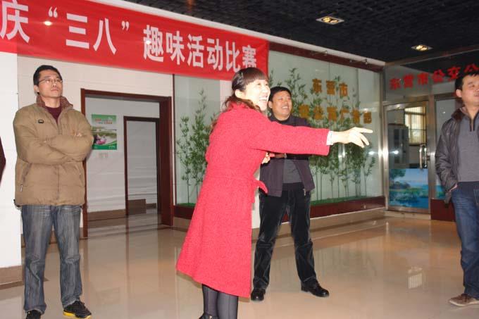 為慶?!叭恕眹H勞動(dòng)?jì)D女節(jié),豐富和活躍職工文化生活,3月5日下午,市公交公司廣告部舉行了慶“三八”趣味活動(dòng)比賽。比賽設(shè)有搶凳子、夾玻璃球、吹氣球、投擲飛鏢四個(gè)項(xiàng)目。整個(gè)活動(dòng)現(xiàn)場氣氛熱烈,快樂而有趣,所有人員興致勃勃參與到各個(gè)趣味游戲當(dāng)中。大家各施其技,力爭取勝,過關(guān)的喜悅,獲勝的歡樂一次次把比賽推向高潮。