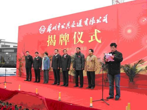 2010年12月15日,蘇州市公共交通有限公司舉行了隆重的揭牌儀式。市委副書記、市長閻立、副市長朱建勝、市政協(xié)副主席葛維玲等領(lǐng)導(dǎo)出席活動(dòng),現(xiàn)場的300多名公交員工共同見證這一歷史性時(shí)刻的到來。
