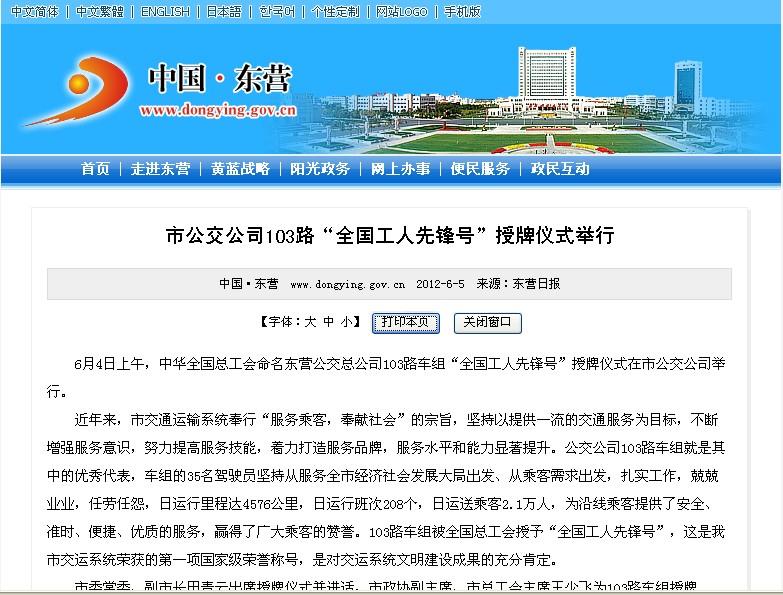 2012年6月7日東營市政府網(wǎng)站報道