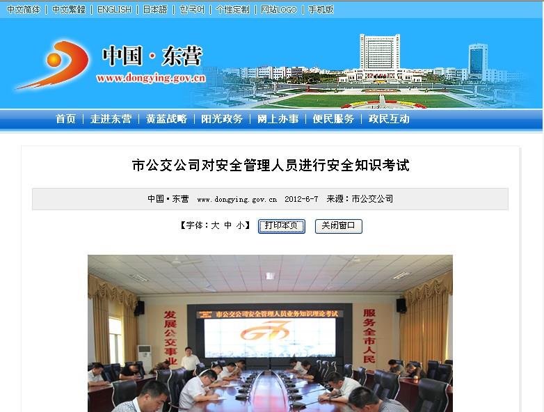 2012年6月7日東營市政府網(wǎng)站報道