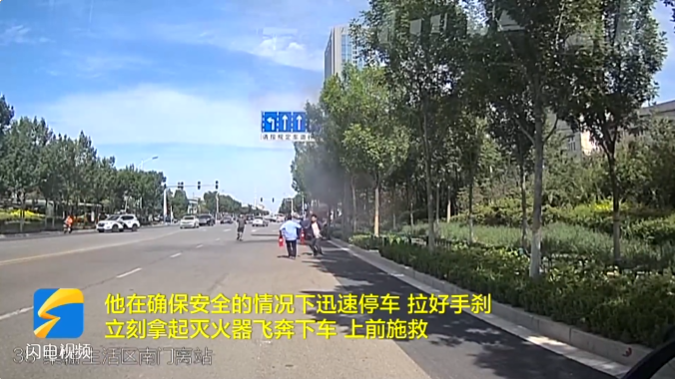 在菏澤路和西三路路口附近,看見前方有濃煙冒出,感覺就是著火了,把車停到路邊,拉好手剎,提著滅火器下去,幾分鐘就把火滅了。確認(rèn)火勢得到控制后,李斌離開了現(xiàn)場,迅速返回到了他的工作崗位上。事后回憶起此事,他也表示這是他應(yīng)該做的。
